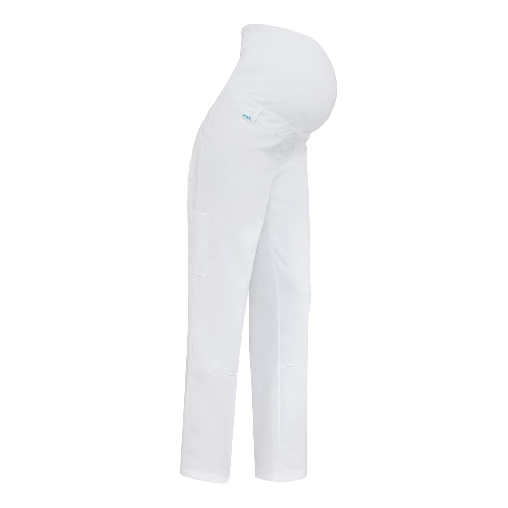 Pantalon de maternité sportif avec bande de hanche réglable avec élastique boutonnière. Tricot jersey autour du ventre et jambes droites du pantalon.